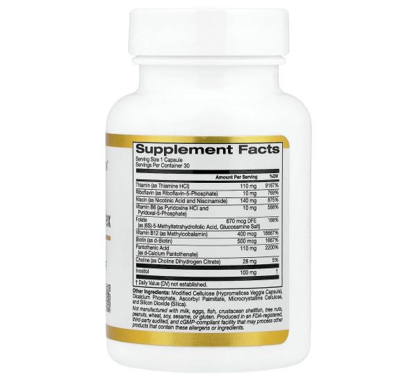 Тіамін (у вигляді гідрохлориду тіаміну), рибофлавін (у вигляді рибофлавін-5'-фосфату), ніацин (у вигляді нікотинової кислоти та нікотинаміду), вітамін В6 (у вигляді піридоксину гідрохлориду й піридоксаль-5-фосфату), фолат (у вигляді (6S)-5-метилтетрагідрофолієвої кислоти, солі глюкозаміну), вітамін B12 (у вигляді метилкобаламіну), біотин (у вигляді d-біотину), пантотенова кислота (у вигляді d-пантотенату кальцію), холін (у вигляді дигідрогенцитрату холіну)
